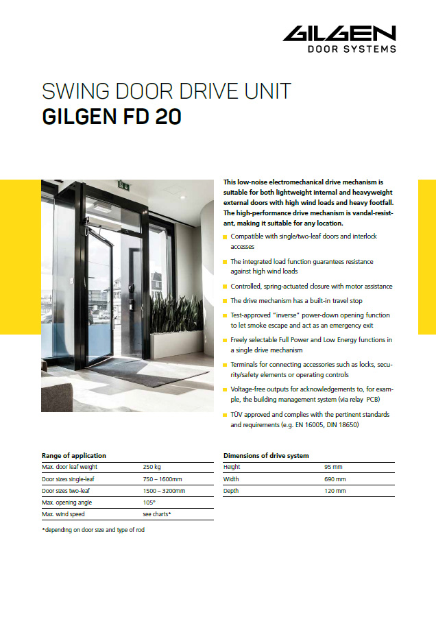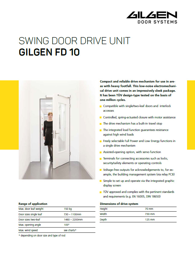 Low-noise electromechanical operators are an excellent choice for a wide range of doors - from light interior to heavy exterior doors. They provide reliable door automation for everyday use, but can also be used as a resistant fire closure.